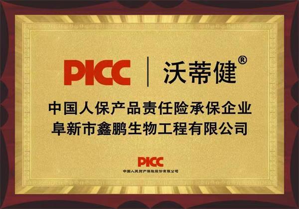 阜新市鑫鵬生物工程有限公司旗下沃蒂健、黑晶尖、芯霸、鑫鵬沃普爾、田寶畝、久畝神、九畝神、炭精神、稔如意、棚地神、松峰山、金禾財有根等系列產(chǎn)品,順利通過PICC中國人民保險審核,為企業(yè)全線產(chǎn)品承保產(chǎn)品責(zé)任險,證明公司產(chǎn)品的真實、合格,也標(biāo)志著阜新市鑫鵬生物工程有限公司為消費者提供安全保障的決心。
